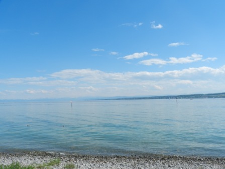 It was just a three hour drive today, on motorways. crossing into Switzerland, skirting around Zurich, crossing into Germany and heading up to Lake Konstanz. With temperatures now creeping up to 20 C, it is all very civilised, and the blue sky, puffy white clouds, glassy lake flanked with snow clad mountains and sporting a few sailing yachts was indeed a sight to behold.