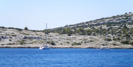 Next couple of days forecast windy, so we ran up to Zirje, some 15 miles north, before the wind got a hold. Mo had to pick up a mooring buoy in 30knots, whilst Nigel kept the boat steady! Success and relatively easy, we were lucky as it was soon blowing 40knots over the deck. It did calm down late evening and we enjoyed the island with some good walks.