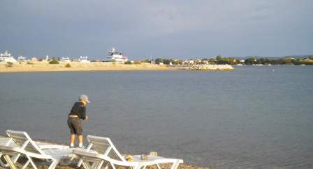 We moored up about 4pm on Saturday 21st July and by the evening we sat watching a spectacular electric storm. The light show spanned 180 degrees with a fantastic display of fork and sheet lightning. Thunder followed then rain and then wind. A Bora, the famous Croatian storm, was underway. The Bora lasted over 48 hours with sustained wind speeds of 50-70 knots. Croatia was brought to a standstill with the mountain roads closed and ferries cancelled. Wild though it was it did not stop us doing loads of cleaning and maintenance jobs.
