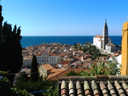 Saturday 15th we checked out of Croatia and motored north to Piran in Slovenia in windless conditions, arriving in time for lunch on board. Apart from being interested in the Slovenian coast, Nigel and Mo needed to declare another departure from Croatia, to conform with customs requirements, and Slovenia was just close enough to make this an obvious and easy option.