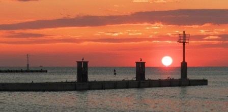 Sailing gently for the first 5 miles, our complacency was soon shattered as we found the wind and endured a roller coaster ride beating into a turbulent sea with 30 knots of true wind on the nose. Needless to say our arrival at Novigrad was welcome and we were soon ashore exploring the small and quiet town. We found a delightful wine emporium which dispensed the local wine in large plastic bottles. We returned to the boat heavy laden with white and red wines filled into plastic bottles from a barrel which turned out to be excellent! Great sunset too.