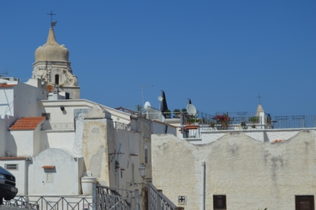 We spent 4 lovely days in Vieste, exploring the old and new towns and soaking up our first real taste of Italian life. Vieste is a busy seaside resort with long sandy beaches both north and south of the town, which itself has bustling main streets with shops, cafes, ice cream parlours and markets. An old part is built on a rock peninsular which has a myriad of quiet meandering backstreets containing houses, restaurants, shops and cafes winding up to a castle and church from which there are magnificent views.
