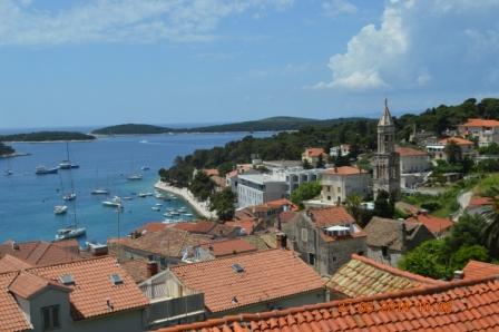 Before leaving Stari Grad on the island of Hvar we took the bus across the island to the ancient town of Hvar to show Ken and Cathy one of the most visited places in Croatia. The bus took us via the ferry terminal where we collected more passengers from the boat that arrived from Split – you can just see it in the distance in the photo below.