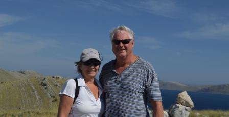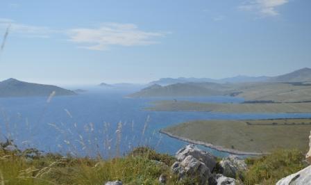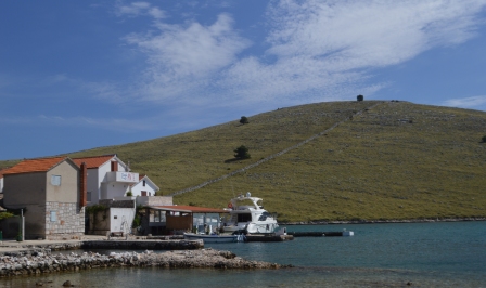 Next day, with plenty of wind, we sailed under the jib only down the Kornati chain to Vrluje where we moored up alongside at Konoba Robinson. We had visited this place before and been greeted by a fine and very jolly old gentleman, the maitre d’ . We had learned that sadly he had died in a boating incident and his business partner was now running the establishment. The service and food did not disappoint and we ate one of the best St Pierre fish ever! We had climbed the hill opposite to give us an appetite and from the top there were wonderful affording views north and south up the Kornati channel. It was stunning. We were on the top of the world!