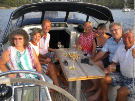 Nigel met Brian in 1973, they were fellow graduates starting work in the Esso refinery in Fawley. We have been friends with Brian and Michele for over 40 years and it was a great pleasure to welcome them on board for a week sailing around Zadar and it’s neighbouring islands. We had a great week, sailed about 120 miles, visited at least 5 different islands and had a delightful rendezvous with the crew of MaXian. Max, Celia, Sheena and Tony entertained us to drinks and supper on board. This trip was Michele’s first sailing experience and in spite of 20knot winds on the nose most afternoons, she survived very well and, we hope, enjoyed it. Brian certainly did. He is a keen and willing sailor and was soon number one crew as Mo was nursing a bruised shoulder. The story of our week is told in pictures below!