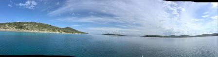 Nigel then spent the following four days until Mo arrived cleaning and polishing such that Deja Vu looked better than ever. Then it rained leaving a fine deposit of red dust all over the boat. C’est la vie! When Mo arrived we had a beautiful calm morning so we decided to rig the new sails in advance of Gunter arriving. All went well and the changes looked to be a great improvement. We rented a car and did the admin in Zadar and another couple of rounds of shopping to stock up and get the perishables.