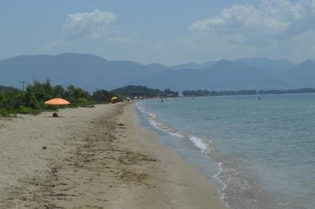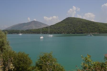 We set off south for a few days and visited Garista Bay, off Corfu town, Platarias town on the mainland coast and Mourtos village, again on the mainland coast with the small Sivoti islands offshore and the quiet anchorage of Valtou just north of the busy port of Igoumenitsa. The anchorage here beyond a raft of fish farms was very remote and beautiful, spoilt only by its proximity to a mosquito breeding swamp! We went ashore here and walked over the hill to see a wide beach looking across to the busy port of Igounimista. One calm night was followed by strong winds that made the anchorage very uncomfortable and our anchor dragged. We quickly re anchored with lots more chain out.