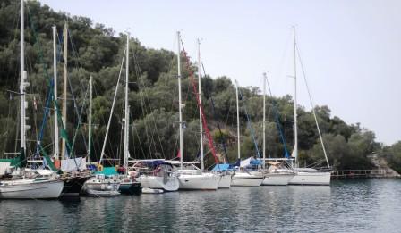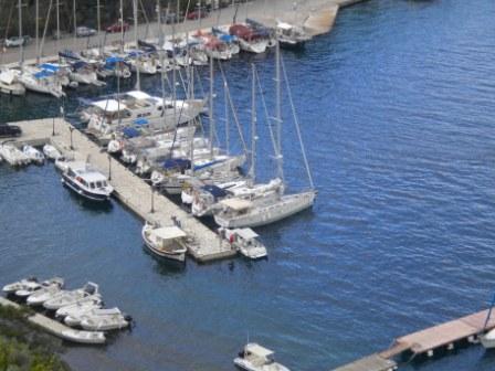 The watch on the weather ahead revealed storms on the radar (oh no not again!) for Sunday, Monday and Tuesday, so we played safe and booked into a small marina in the tiny port of Vathi on the north coast of Meganissi which looked to be well sheltered from the southerlies to come.