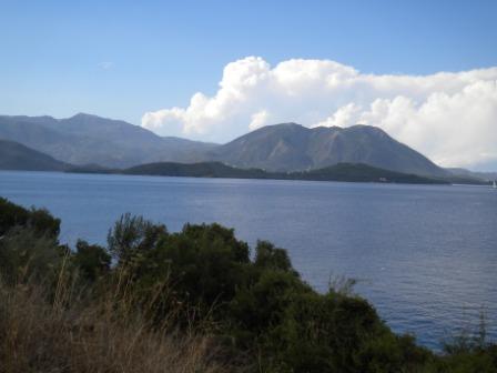 We decided to dust off the bikes and explore the northern end of the island, cycling firstly around the coast to the next harbour of Spartakhori where we stopped at the Taverna Spilia for a beer and to investigate mooring options which were good. We then climbed to the hilltop village of Spartakhori itself to enjoy the fabulous views of the inland sea. The road then led up and down along a ridge to the main village of Katameri before a pleasant descent back into Vathi. It had been intermittently cloudy most of the day, ideal for the unfamiliar burst of aerobic exercise on the bike! Photos below taken en route.