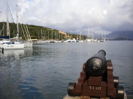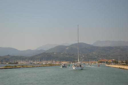 A fascinating motor through the 3km long canal afforded interesting views of the islands ahead, Lefkas town and marina and evidence of the constant dredging operation which keeps the canal navigable at about 5m depths.