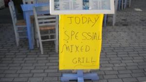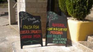 However on our return to the anchorage in Vathi Bay we encountered the full blast of the afternoon breeze which blew with some force until well after midnight preventing us going ashore as we did not fancy getting soaked in the dinghy! Before we left Vathi the next morning was calm and we did go ashore for bread to discover a very pretty and well stocked town with plenty of restaurants and boards to amuse us.