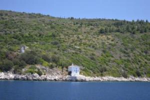 Not everyone agrees but Homer claimed that Ithaca was the home of Odysseus and the locals make quite a play on this. Acutally when we got closer the black mountains showed their green faces and it all seemed much more friendly. The peaks here, and on Kefalonia rise to well over 1500m.