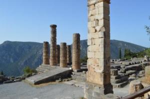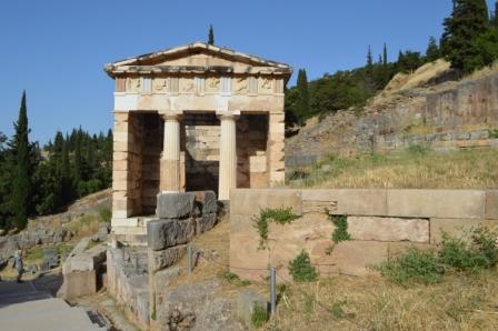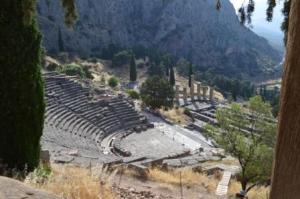 It provided the wnderful opportunity of renting a car and taking a trip high up into the surrounding mountains to the north, to Delphi, one of the world’s most famous archaeological sites. It did not disappoint. Nigel had been before some years ago, and the advice to go early was well heeded. We were in at 830am soon after opening and got ahead of both the extreme heat and members of a large crowd who had just spilled out of one of the many coaches. Quite athletically we climbed up through the ruins to the Stadium at the top of the site, to be the first to arrive and savour the atmosphere for a few minutes all on our own. It was incredible to imagine civilisation living here hundreds of years BC and it is remarkable what relics and treasures have been preserved both on site and in the museum. Full sized statues on display in superb condition had been found in the 19th century by French archaeologists. They had been buried by earthquakes over 2000 years previously, escaping the removal and looting that befell other items over the passage of time.
