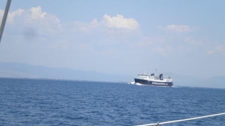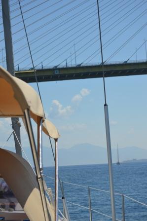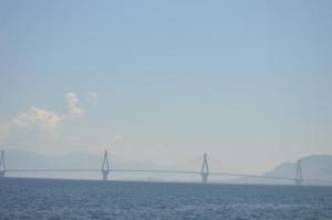 Off by 8am, we set a course for the famous Rion Bridge spanning the Gulf of Corinth from Patras on the Peloponnese to the northern mainland. A beautiful feat of engineering with 3 spans, each over 25m, and 45m high at the tallest point. With Deja Vu having a mast height of 21m this was quite important and it still felt quite counter intuitive to pass beneath it!