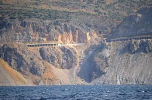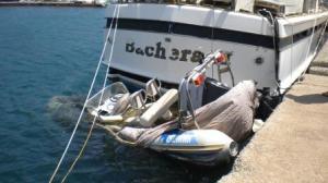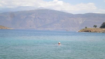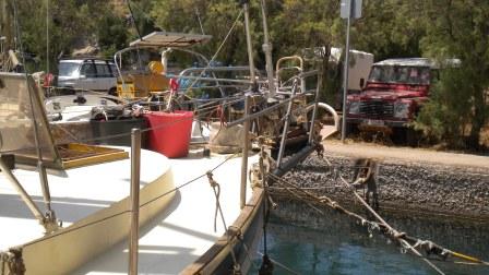We spent a couple of days here to explore the village, which comprised 3 or 4 tavernas and bars in a delightful setting, walking around the island and doing a few jobs on board. There was no getting away though from the depressing surroundings of sunken boats, derelict craft abandoned to deteriorate and eventually sink on their moorings. There was evidence of work being done to raise a sunken ship from the inner harbour, but once again, a job half done.