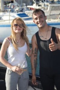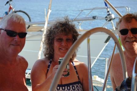 Our first port of call was Korfos, some 15 miles south of the canal and here we spent a couple of days whilst some strong winds and significant rain blew through. Brian and Michele were impressed with the daily entertainment afforded during our week with them, and on this occasion it comprised getting our anchor stuck in fishermen’s mooring tackle necessitating finding the very young and good looking local diver, Yannis, to release our tangle. We were also caught in a severe and unexpected blow on the visitors’ pontoon and all helped the boats on the windward side as anchors dragged and general mayhem let loose. The upside was that we did make some new friends and shared a beer with Alistair and Mary McDonald on yacht Cormorant!