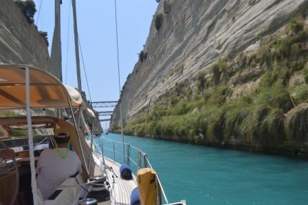 Passing through the Corinth canal on our own boat was a real privilege and special experience which we enjoyed enormously. Not only could we admire the engineering achievement of forming this 4km long, 25m wide channel through limestone towering nearly 80m above us, but we were also changing seas from the Ionian to the Aegean, which was quite a watershed moment. At the far end of the Canal we had to tie up and pay the transit fee. The Corinth canal is officially the most expensive waterway in the world.