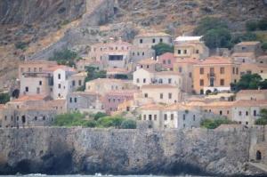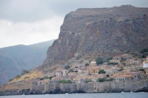 We took the opportunity of a gap in the weather and some reasonable northerly winds to go south . Leaving late just after 10am we did have a cracking sail in an albeit lumpy sea and averaging over 6knots under sail we arrived in Monemvasia soon after 3pm, having covered 32 miles. Not bad we thought. We sailed past the huge rock that is Monemvasia, with an amazing ancient village clinging to its seaward side. It is clearly a must see place, so we look forward to exploring it soon.