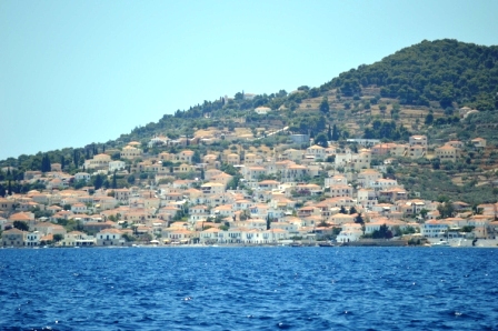 We set off from Ermioni on the eastern most penisular above, on Wednesday 20th June and had a great 10 mile sail with 12-14 knots behind us, on the beam then on the nose, past the island of Spetses to Porto Heli, a reknowned safe place for yachtsmen with a sheltered anchorage. That was really the best part of it as our dinghy ashore reminded us that this port with its part built new marina (familiar story?) left a few things to be desired. We were now in serious weather forecasting mode to plan the journey west, so took advantage, eventually, of wifi in the local bars.