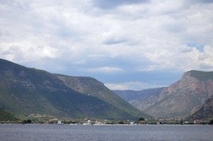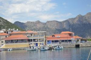 We did not stay long in Porto Heli having anchored off shore and make a quick departure on Thursday 21st striking west to Leonidion on the Elous peninsular. A really warm welcome here from the helpful young harbour master and also from Michael, the proprietor of one of the local restaurants who bequeathed a carrier bag full of organic tomatoes and cucumbers, locally grown we were told. He certainly knew how to secure evening customers. Food was good there!