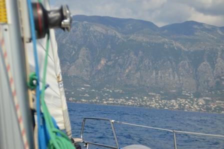 Back on the boat the next day we had a most enjoyable sail across the top of the gulf to anchor off the town of Petalidihion. On the way the wind was from the north on our beam, on the way back it was from the south, on our beam until we were a couple of miles away from the marina, when it died altogether for a while. The next thing we knew was we were in a 25 knot northerly! Such is the fickle nature of the winds in this part of the world .