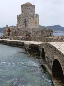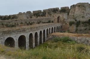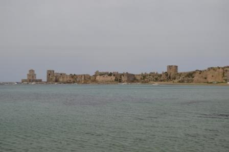 Methoni was very interesting with the ruins of an impressive Venetian fort and a Turkish tower straddling the north south peninsular below the town. The fort guarded the shipping route around the Peleponnese. When the Turks captured it and it is told that Cervantes was a prisoner here and the tale in his Don Quixote of the captive may well relate his experience as a Turkish prisoner.