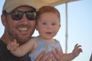 Nigel had fitted an extra lee cloth in the main cabin to create safe cots for Rose and Martha. Rose took to her ‘pirate bed’ with great enthusiasm and slept soundly each night. Martha was not quite so cooperative, understandable at only 7 months, and preferred to keep Mum and Dad company in the forecabin berth, which is luckily very wide!