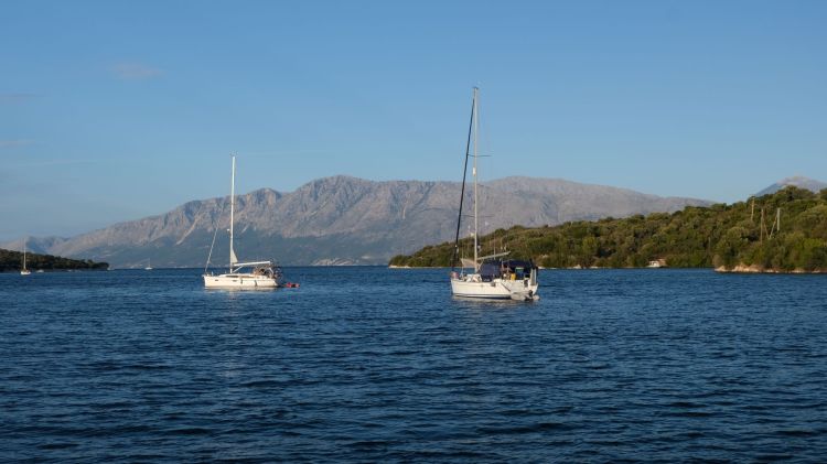 We moved on to Nidri, staying overnight on the IBA pontoon, to do a couple of minor repairs and to reclaim Mo’s residency permit, that was, at last, ready to collect. It was a pleasant stop. We enjoyed the reciprocal relationship the IBA had with an adjacent hotel to use their pool and bar, and we were recommended to eat out at Ola Kala restaurant. Here the friendly Albanian George delivered a first class Greek meal in what we felt to be safe and hygienic surroundings.