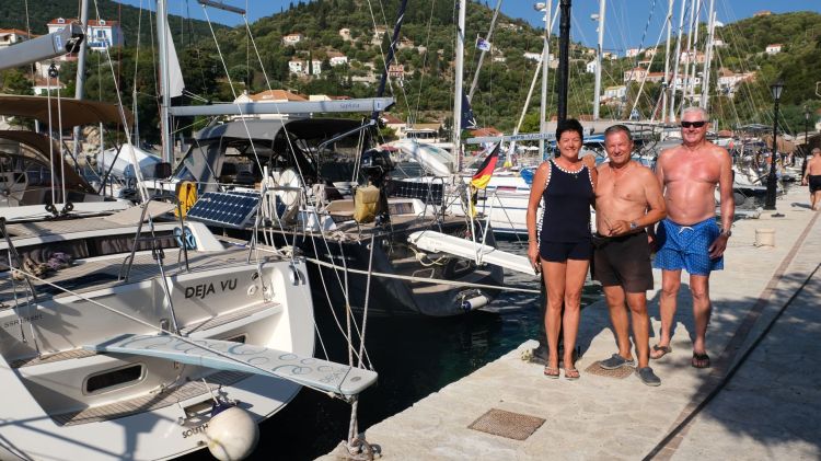 A first for us was to call in on Kioni, still on Ithaca. A pretty village, the quay is usually full from 11am, but as luck would have it we entered at noon and there was a space just next to our fellow Sunbeam owner friends, Joe and Elke. We were soon moored up and we enjoyed a pleasant day exploring.