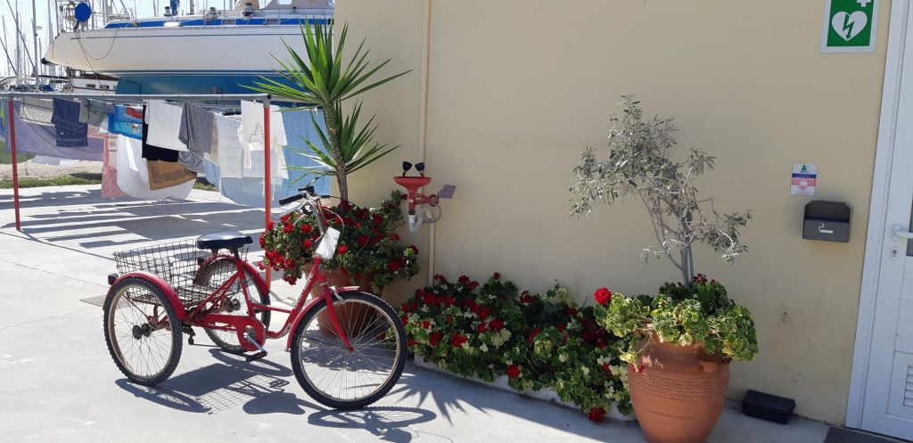 Marina Cleopatra is sheltered from the south, but we looked across to mayhem on Preveza Quay, where we would have been had we left as originally planned! Many boats were leaving to escape the waves attacking the quay. So two lots of luck in one day. Hope we are not using up our quota all up in one go as we have a few weeks ahead yet!