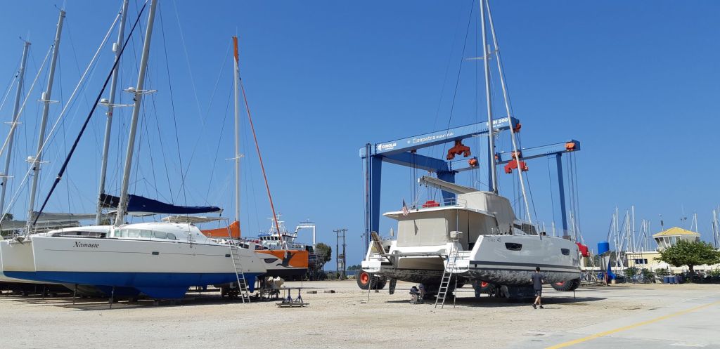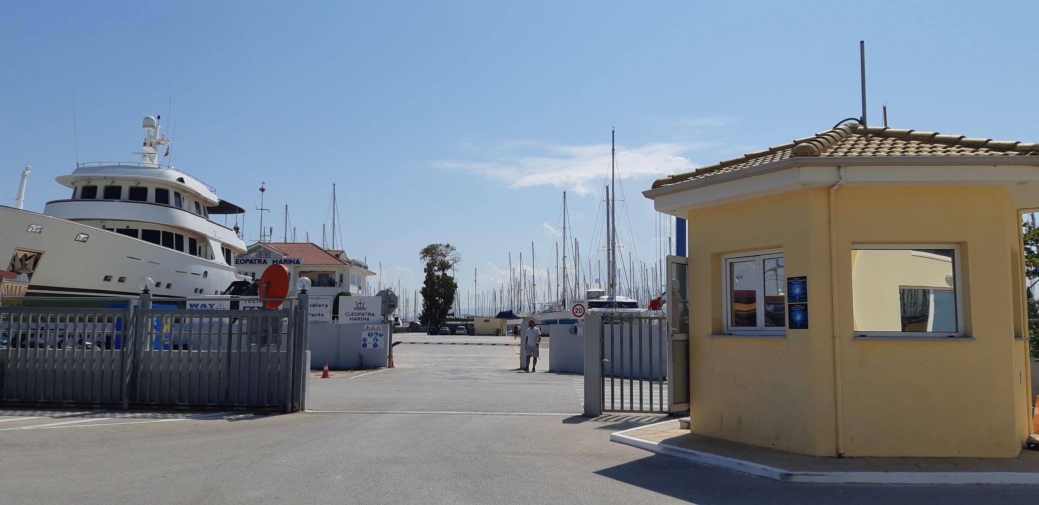 Whilst waiting for the launch we were reminded what a superb facility Cleopatra Marina is; here are a few photos taken as we walked with the boat on a tractor to the water. Massive cranes, laundry area, first aid post, admin building, security entrance and marina promenade. All very lovely.