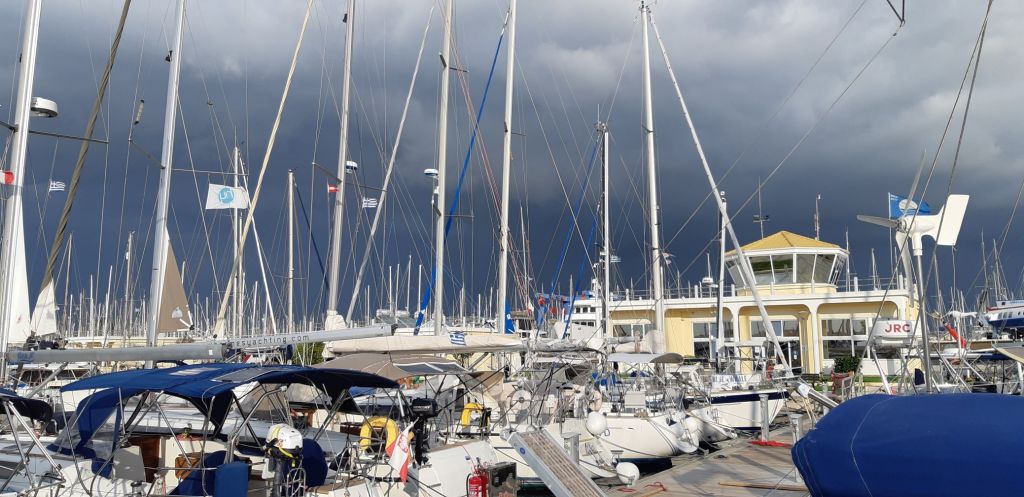 Lauch we did, on time! It turned out to be a good decision to stay one more night in the marina so that we could finish wiring the solar panel the next day, close to a chandlery. Last evening we commented on an eerie lull to the afternoon breeze at about 6pm and looking south, the sky was black. By 630pm there was deafening thunder and a chunky 30 knot wind from the south.