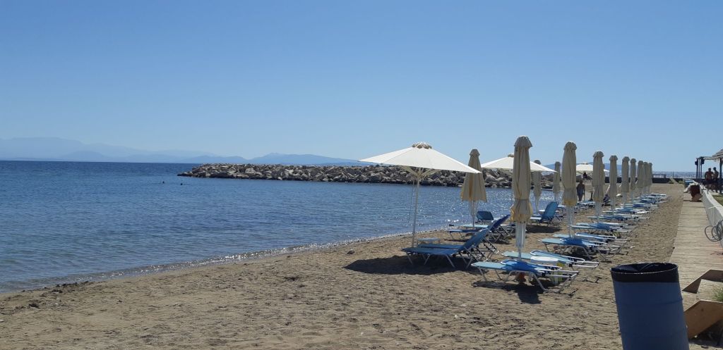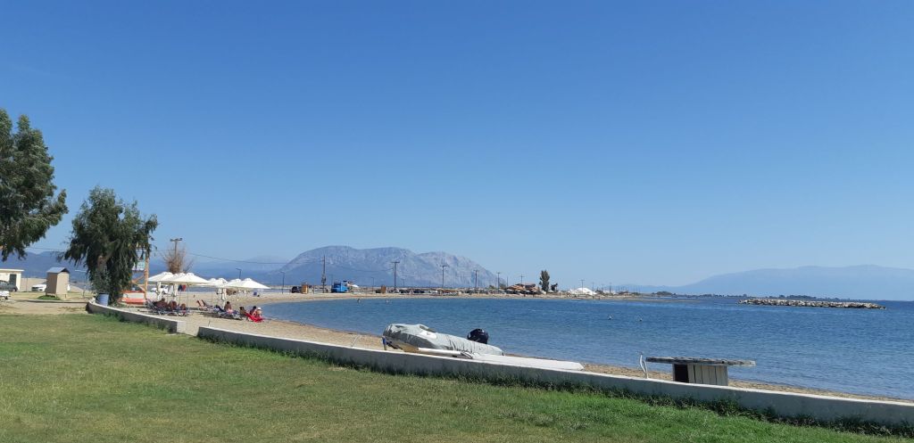 We stayed on Trizonia for a couple of days whilst the strong winds blew and spent the time exploring paths to take us to the southern tip of the island where we found a great beach and enjoyed a picnic and swim. That evening we met Dick and Amanda from Thalassa of Ipswich who had berthed at the end of the same pier as us. It turned out they were on a trip around the Peloponnese before the end of October. After a “get to know you” beer or two we were invited to join them on their boat for dinner which comprised some of the magnificent Tuna they had caught the day before. We had a most enjoyable evening with good food, good conversation and wine.