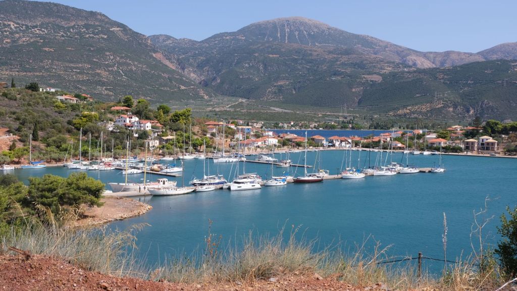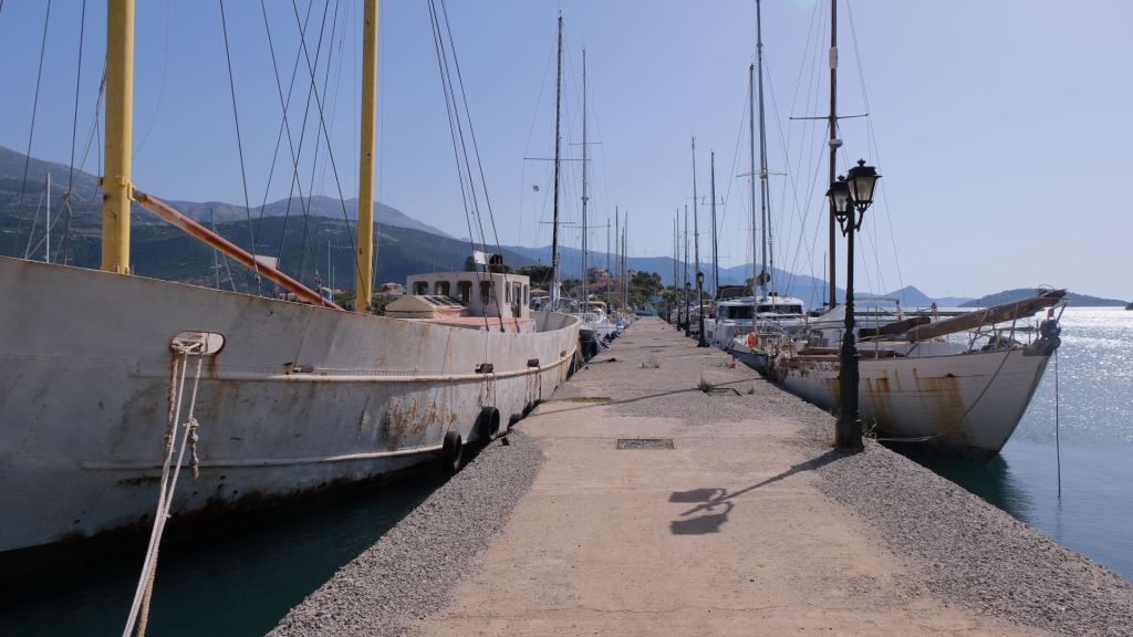 Next stop was Galaxhidi, a pretty port 20miles further into the Gulf that we had visited before in 2018 and from where we had hired a car to visit Delphi. This time it was a stopover to swim and further explore the pretty town. The local museum, claiming to the first museum in Greece(?!), opening in 1928, charted the history of Galaxhidi as a thriving ship building port, responsible for building and commissioning many commercial trade vessels in the 19th century. Unfortunately, being unable to embrace the change to steel construction and mechanization, the industry ended as the 20th century unfolded. The museum is a sympathetic illustration of the struggles the town endured, being razed to the ground on more than one occasion by invading Turkish forces. It also houses ancient archeological remains, an amazing art collection depicting ships built locally and an interesting philatetic collection of universal shipping history from across the world; an eclectic and fascinating display!