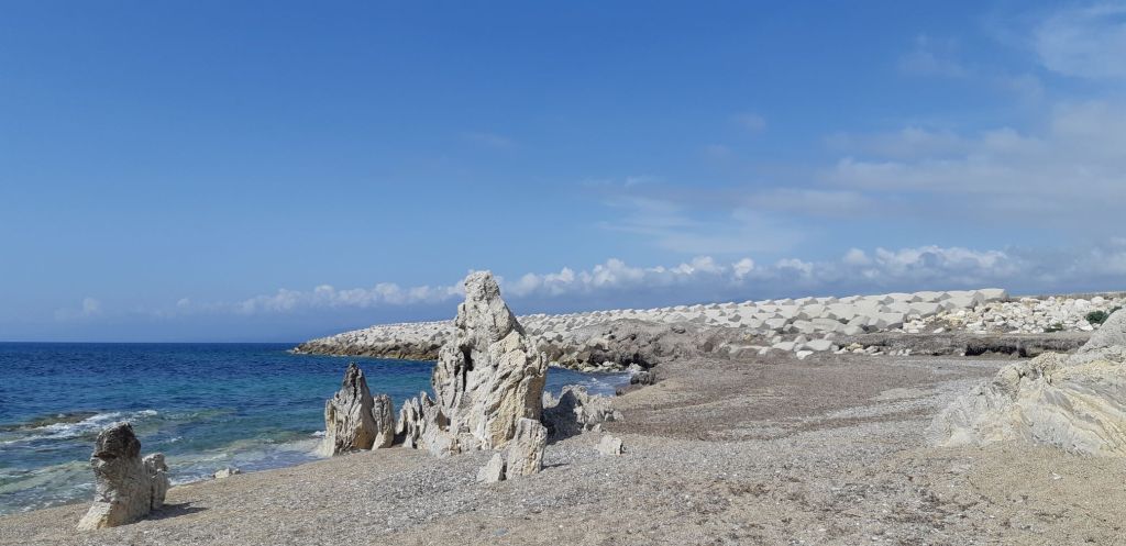 Kiparissia harbour is a reasonable size, quiet and underdeveloped which gives it a certain charm. Most importantly it is sheltered from weather coming from the south. Water is available if we join 2 or 3 hoses together but no shore power so we will rely on our solar power, which if current cloudy conditions persist may be a challenge! We were visited by the most entertaining harbour master soon after we arrived to whom we were happy to pay our harbour dues in return for his inimitable sense of humour. There is big reconstruction of the harbour wall going on and round and about there are long beaches. It is much too cool to be remotely interested in swimming though! The normal working town sits atop the hill and is busy, full of shops, so we will not be lacking in supplies. The forecasts ahead are unbelievably disappointing and will keep us here a while. Strong south easterly winds will blow until next Tuesday so we are making preparations here to be as safe as possible; it will certainly be exciting and we may not get much sleep; but we are in a harbour along with several other sailors of the same intent, and we are all fortunate to have some shelter. We have done about 150 miles so far, averaging a speed of 5/6 knots. We have a rendezvous planned in Pylos, the next port another 30 miles south for May 18th; 5 days hence, where our sailing friend Peter is joining us for the next exciting installment of our ‘Round the Peloponnese’ trip.