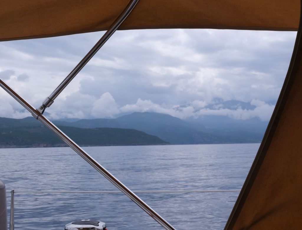 The journey along the southern tips of the Peloponnese was a mixture of motoring in no wind, sailing in some wind and motoring into too much wind. Sometimes cloudy, sometimes sunny and hot, often cool but importantly we did manage to avoid the rain which was ever-nearby and often threatening.
