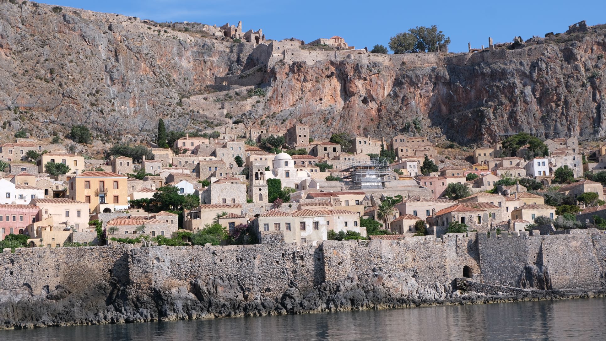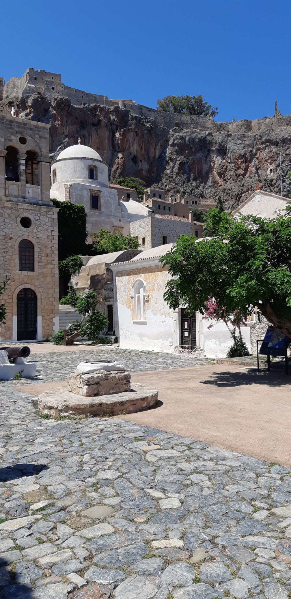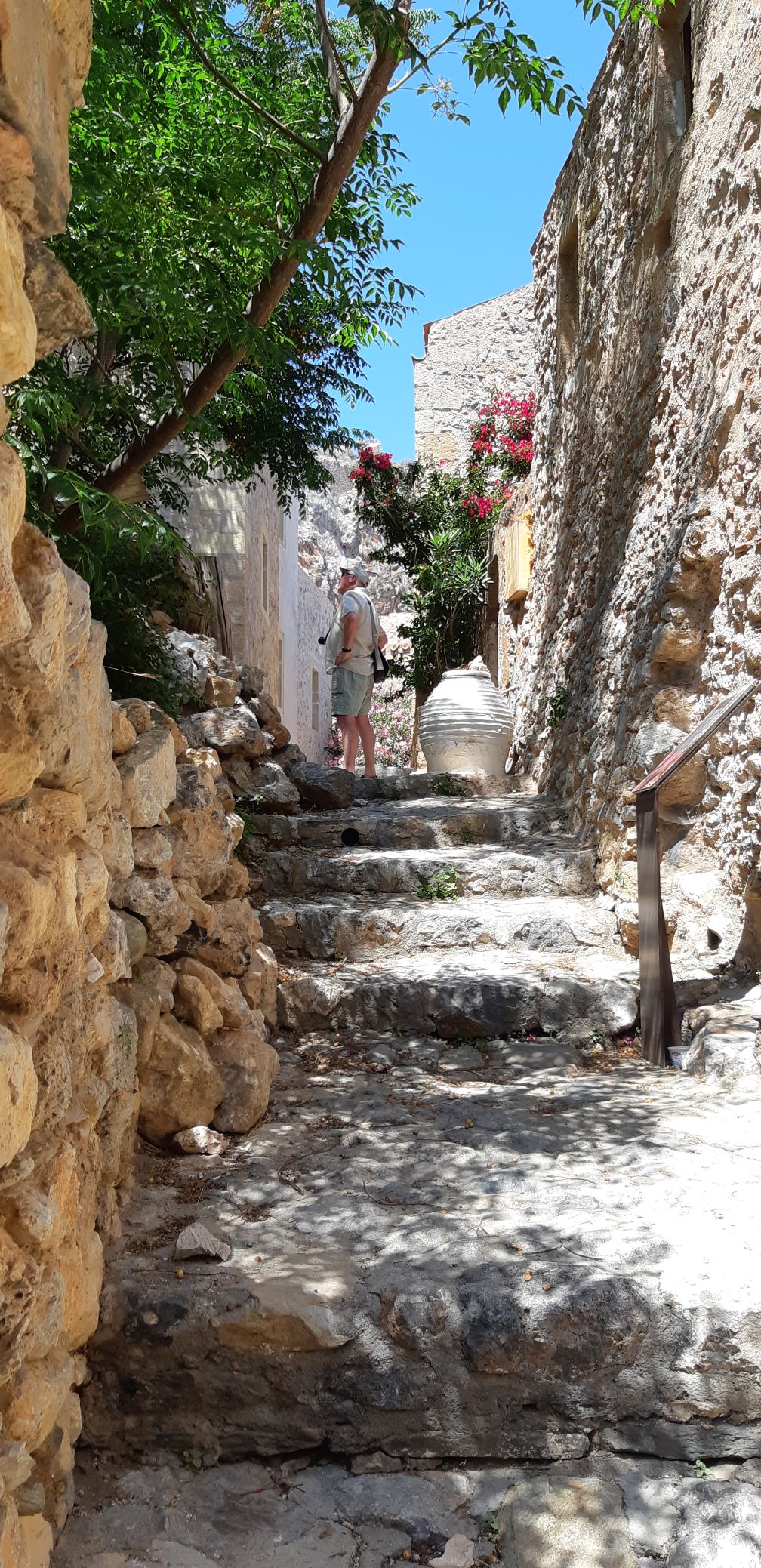 We had a superb stopover in the lovely Monemvaisa, home to an ancient and fascinating Byzantine town, after rounding the infamous Cape Maleas (dubbed the Mediterranean Cape Horn). The redoubtable restauranteur and unofficial harbourmaster, Mateo, helped us find a berth in the harbour which is still under reconstruction. It will be great when finished. In the afternoon we took Peter to the old town which was as interesting as the last time we visited. Well worth the effort of getting there and there are many really attractive places to stay.