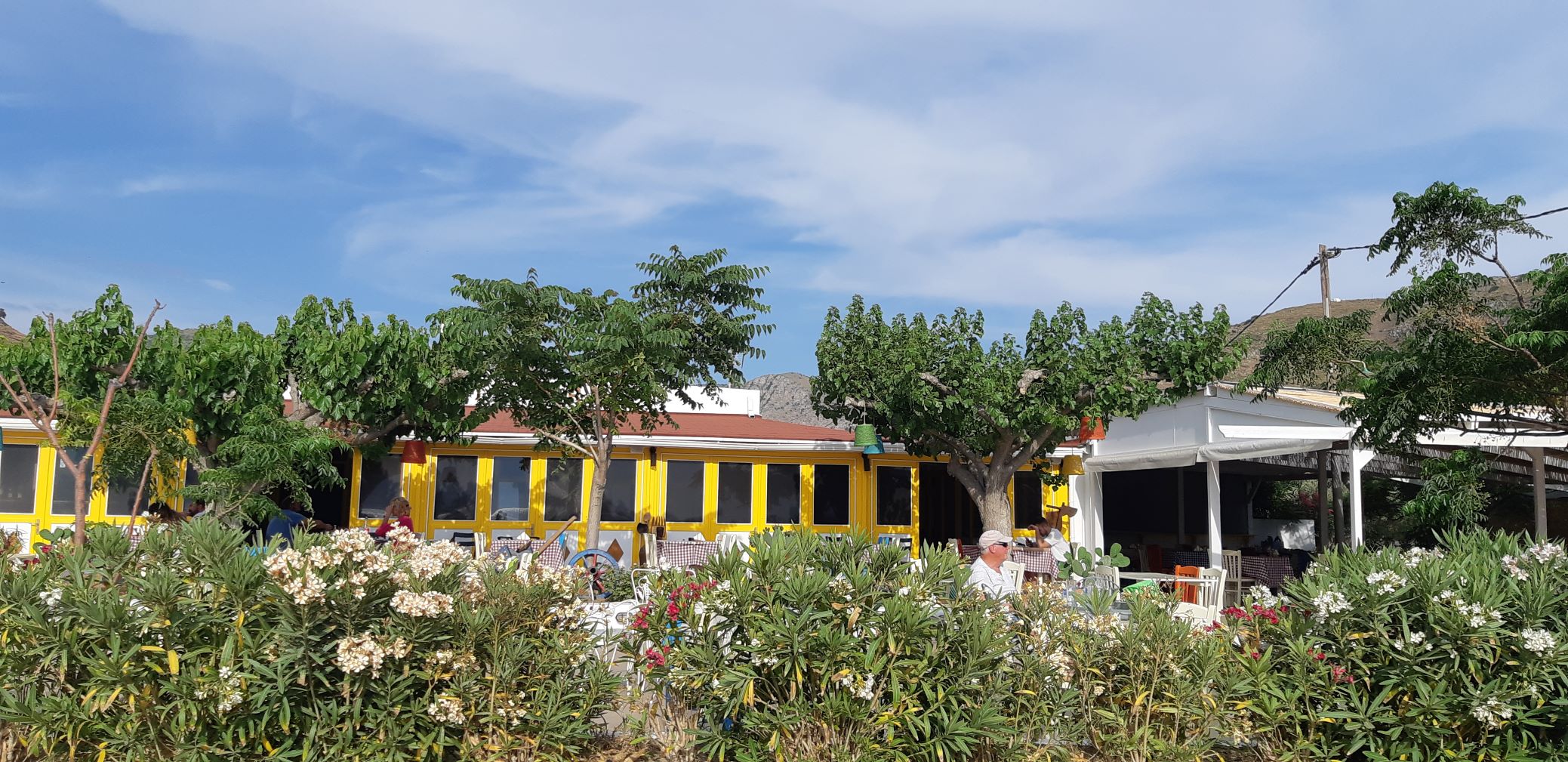 In settled weather we moved on the next day to the next island, Kythnos, heading again for an anchorage, Apokriosis. This was again a pleasant bay but we struggled at first to get the anchor to take. The bay sported two tavernas both of which we visited in the course of our two day stay. The northerly one was very rustic and Greek, the southern one was pretentious although welcoming, expensive and not very Greek. The beach was great, with soft sand. Pictures of Apokriosis below, taken when calm, it was very windy most of the time!