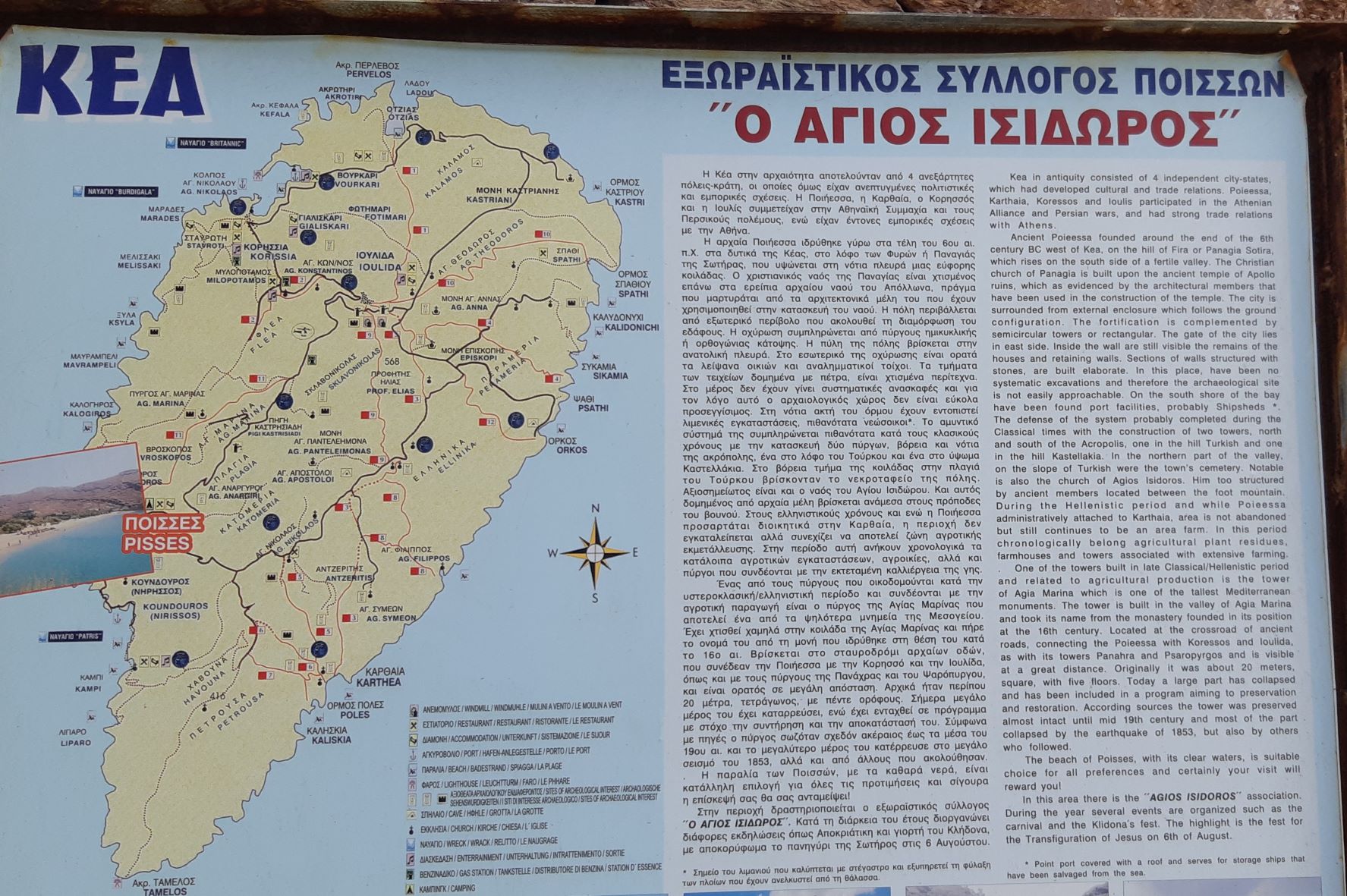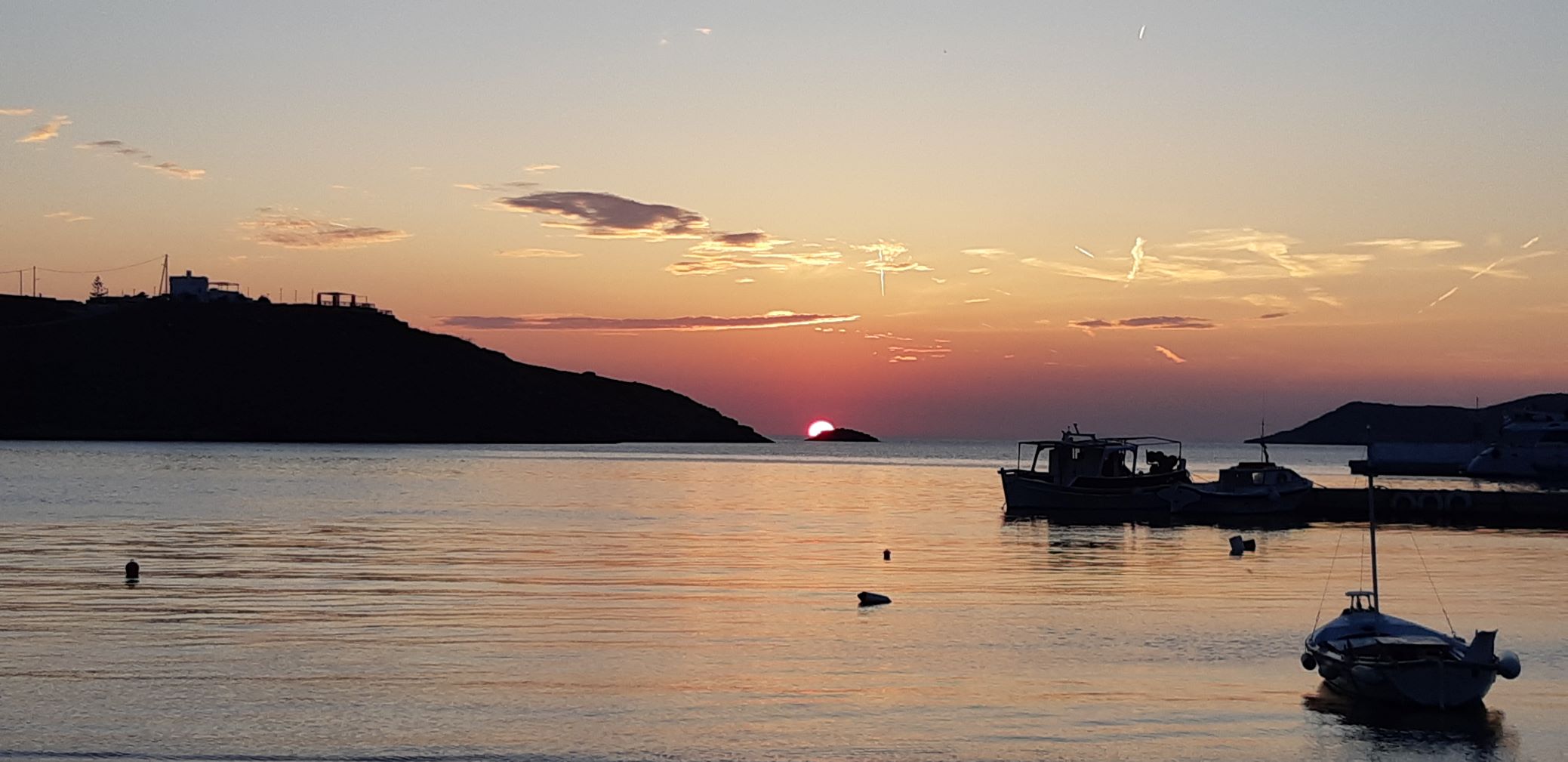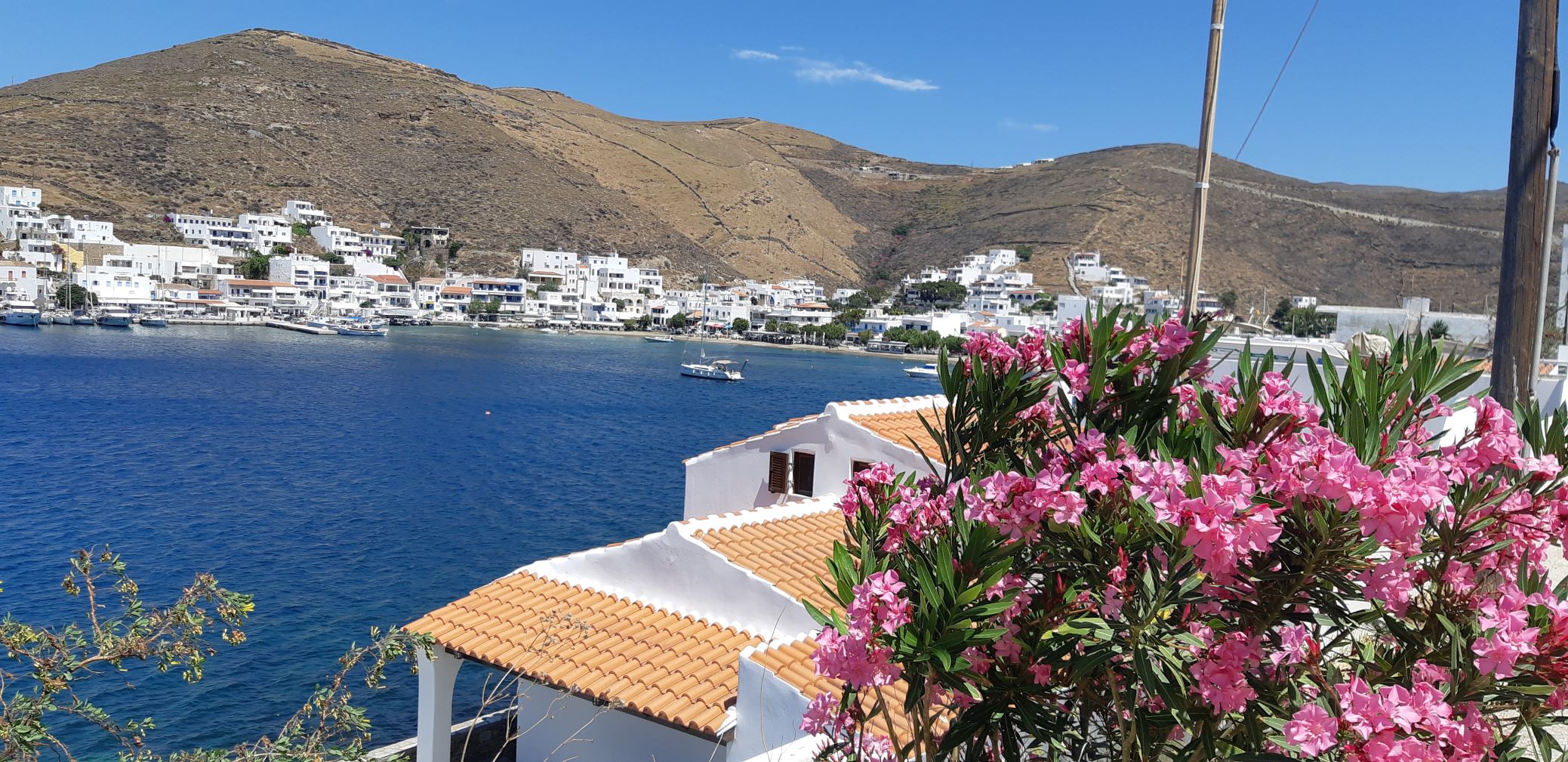 We returned to much better weather with about 5 days of fine weather forecast. This gave us the opportunity to visit some of the nearer Cyclades islands. This group of attractive islands sits right in the path of the strong Meltemi wind and from about Mid June to the end of September it is a risky area to visit in a yacht for fear of getting stranded by strong winds. Climate change has made the Meltemi blow harder and for longer than before. Once we cleared the island of Makronisos we had a clear run to the first island in the chain, Kea. We headed for Pisses, a sheltered bay in the west coast of the island. It was a delightful anchorage, quiet and good holding. Scenes of Kea and Pisses Bay below.