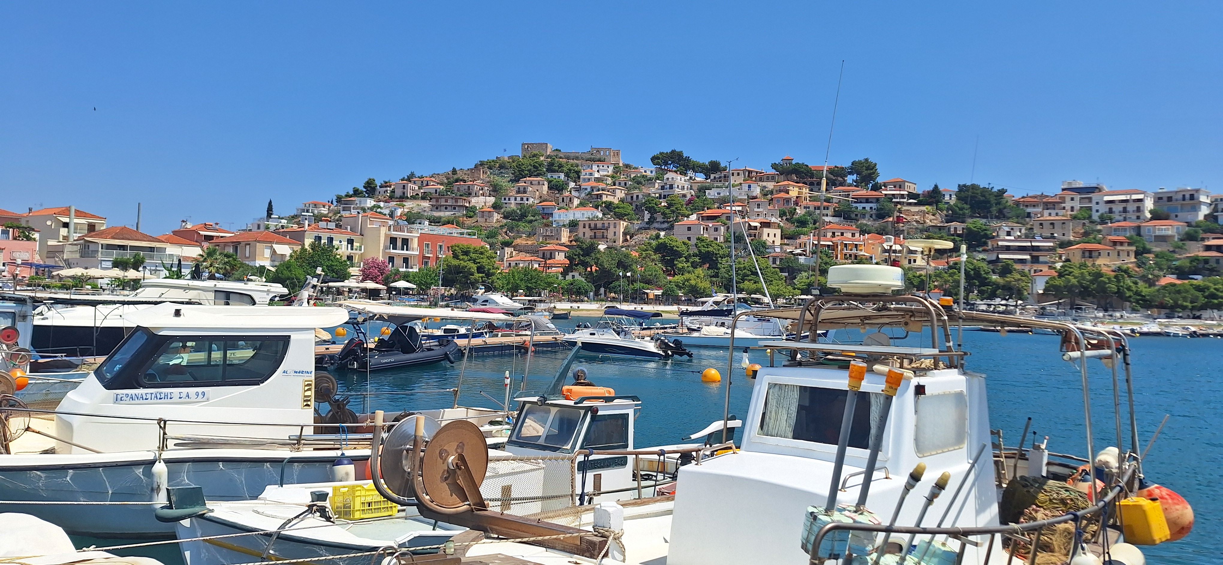 It was time to head west so we set off for Ermioni in little wind but as we approached the island of Dhokos the wind increased to a force 6 on the nose. The little sailing that we did beforehand then gave way to a final motorsail across a sea of white horses to the welcome shelter of the south quay at Ermioni.