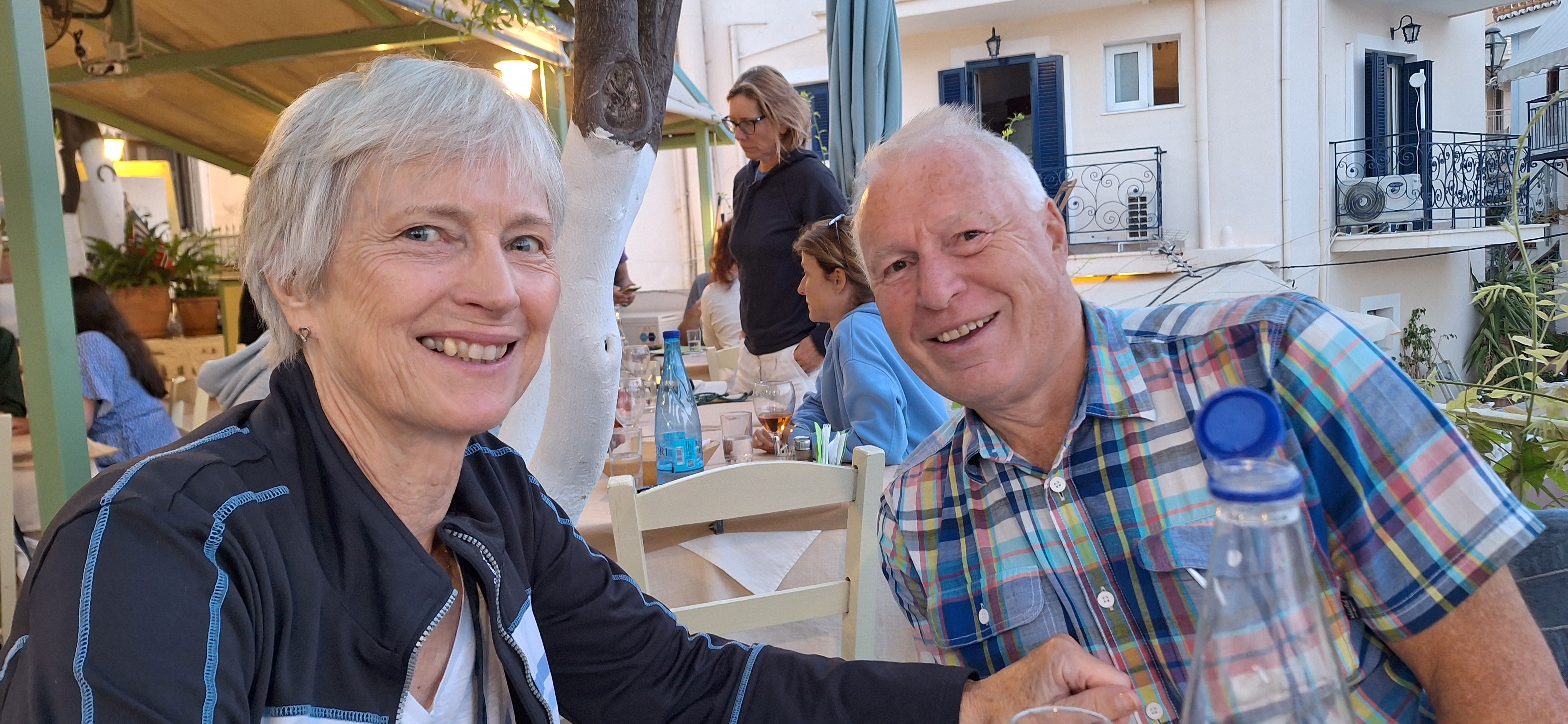 We waited in Poros for a depression to pass by and serendipitously Chris and Liz Jones, our very good friends from long ago, delayed their arrival to allow Chris to get over a virus.