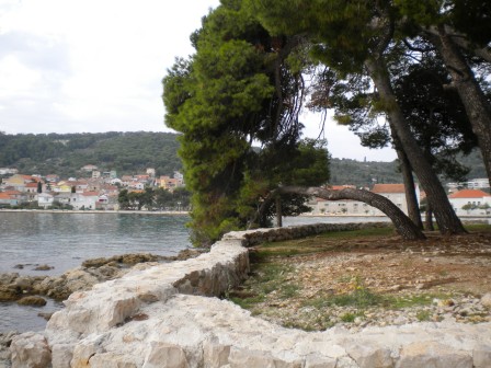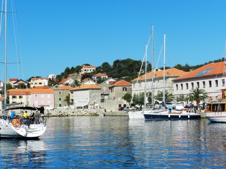 We motored into a headwind to gain some distance then sailed the last few miles into a tiny village of Lucina on Molat that boasted a good harbour wall to tie up to. The sailing season has not yet got going, so it was quiet and the mooring free. We enjoyed a pleasant stroll around the seemingly deserted village, found a war memorial that dominated the centre square and we were most impressed by the very lush vegetable gardens we saw everywhere. That night we ate on board, but did support the local economy by visiting the adjacent bar!